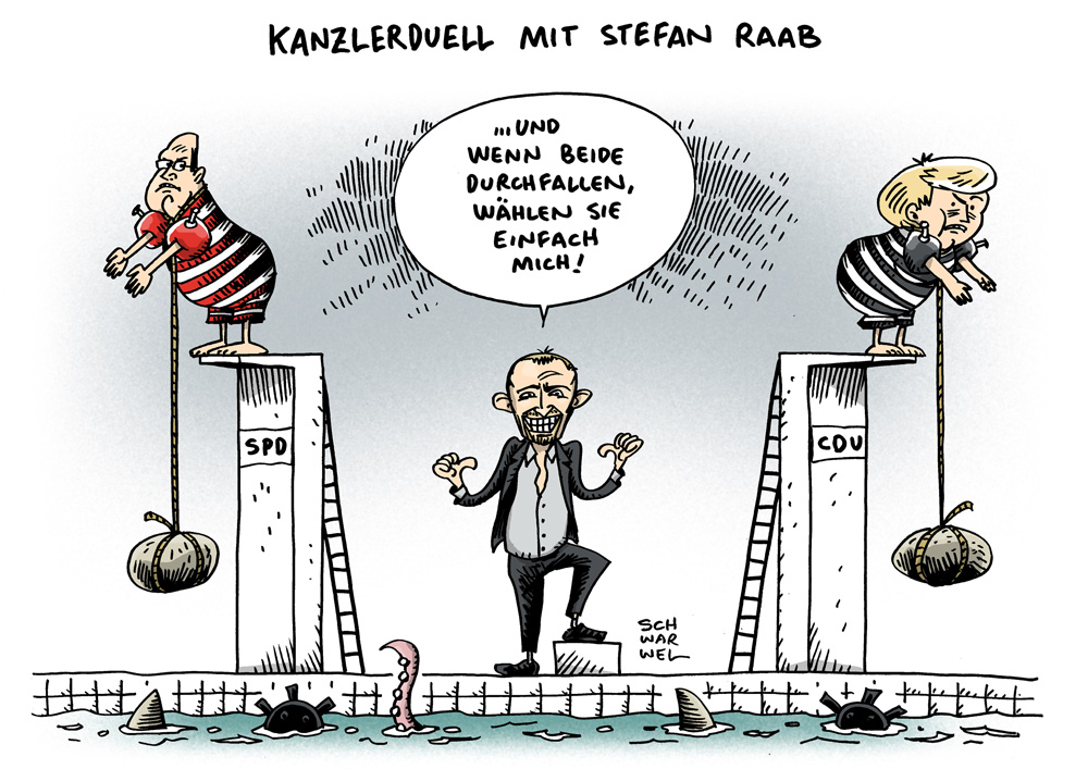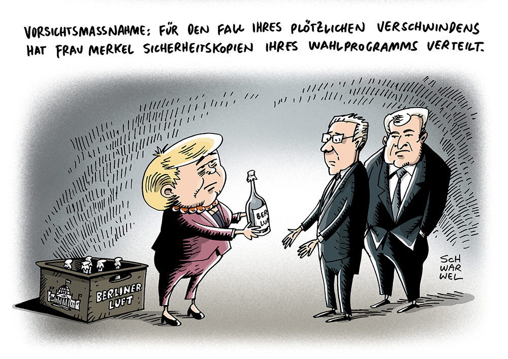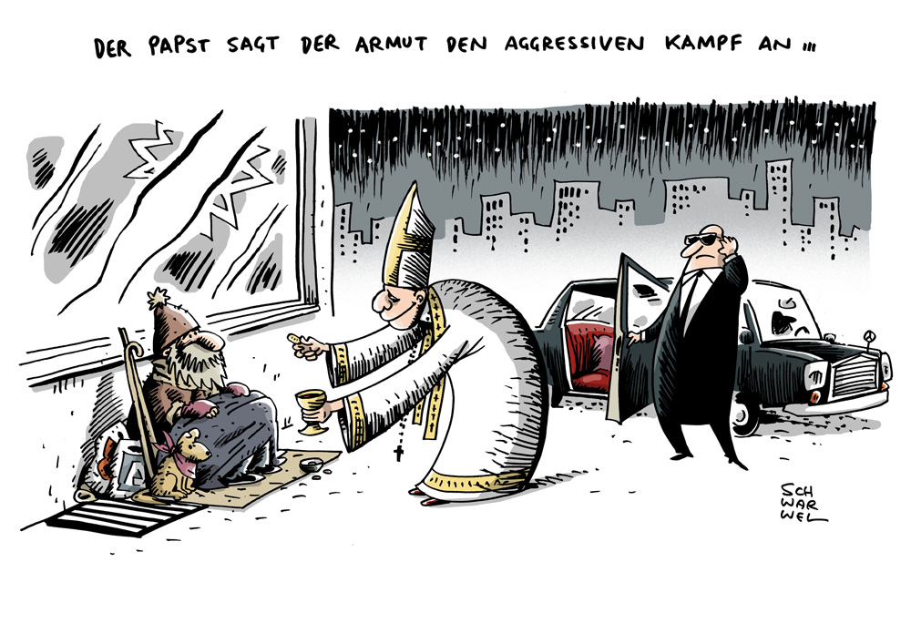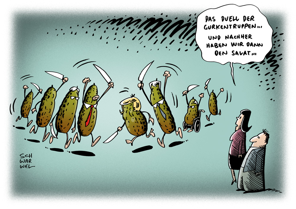 Auf dieser Seite befindet sich eine Auswahl der Karikaturen von Schwarwel. Eine Gesamtübersicht aller Karikaturen, die seit 2010 entstanden sind, gibt es auf Schwarwels Karikaturen-Website www.schwarwel-karikatur.com.