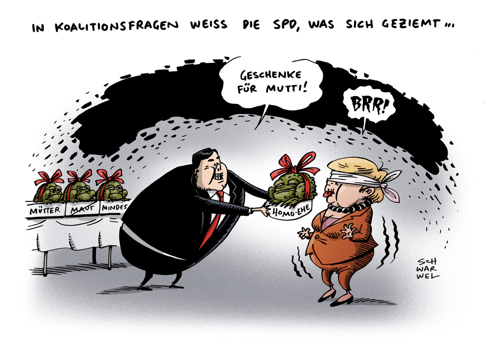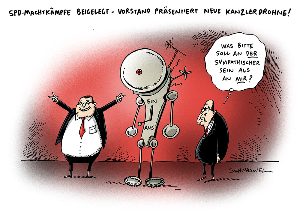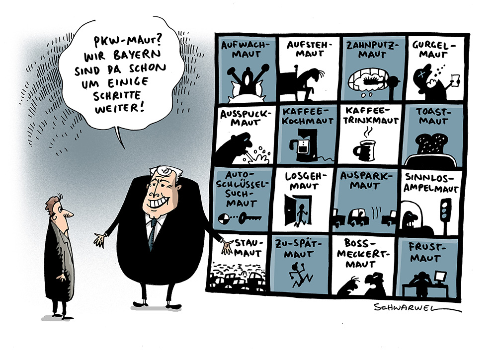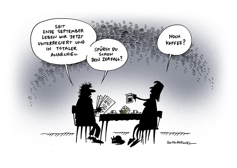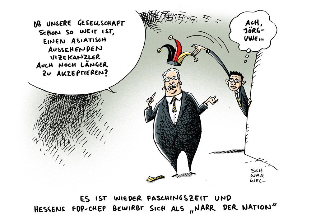 Auf dieser Seite befindet sich eine Auswahl der Karikaturen von Schwarwel. Eine Gesamtübersicht aller Karikaturen, die seit 2010 entstanden sind, gibt es auf Schwarwels Karikaturen-Website www.schwarwel-karikatur.com.