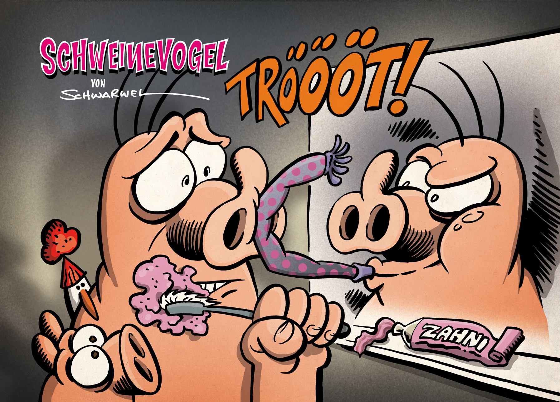 Schwarwel: Weil es mal wieder Zeit wurde, dass Schweinevogel dort etwas erlebt, wo er hergekommen ist: in gedruckter Form.