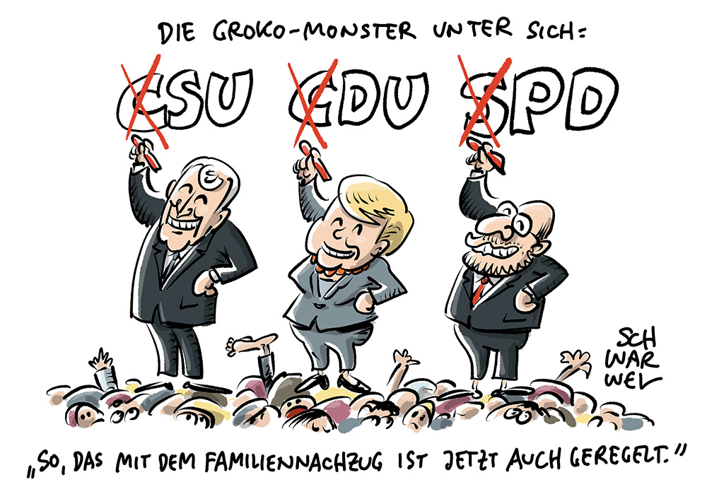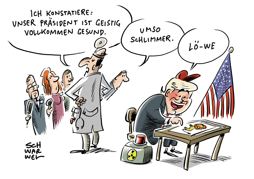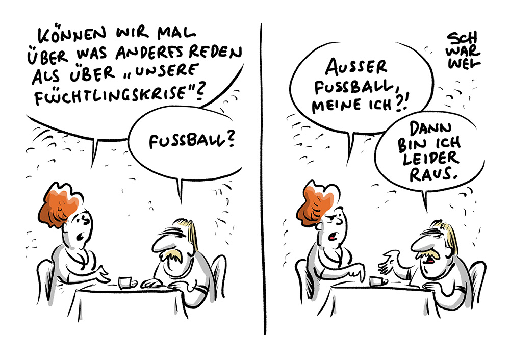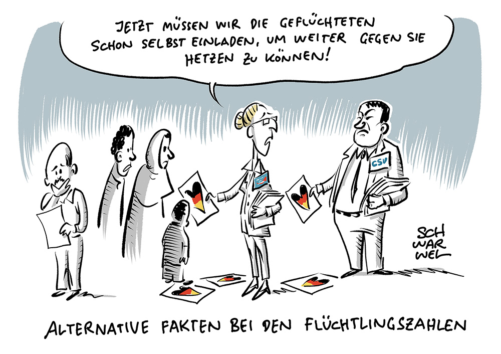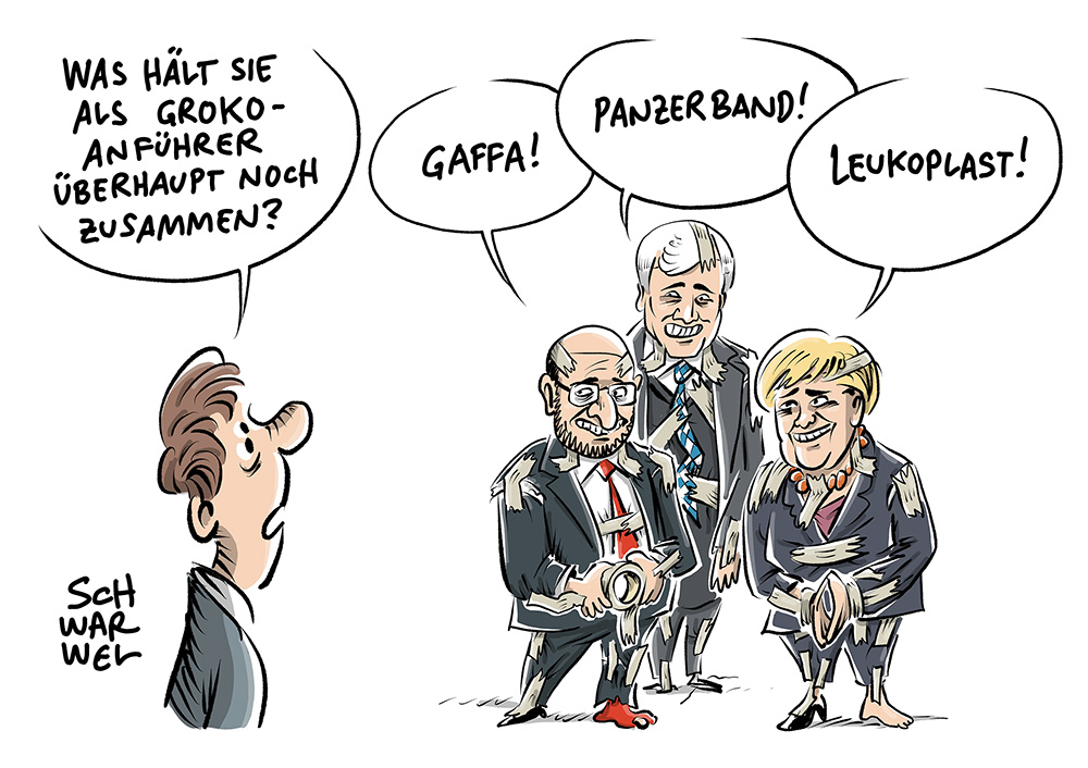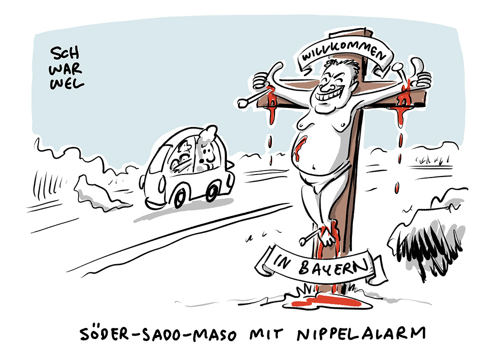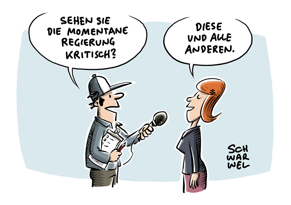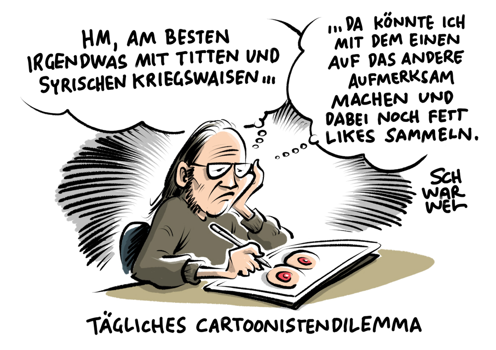 Auf dieser Seite befindet sich eine Auswahl der Karikaturen von Schwarwel. Eine Gesamtübersicht aller Karikaturen, die seit 2010 entstanden sind, gibt es auf Schwarwels Karikaturen-Website www.schwarwel-karikatur.com.