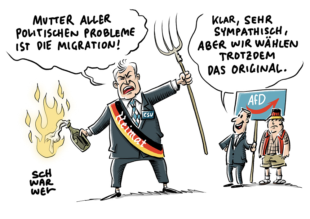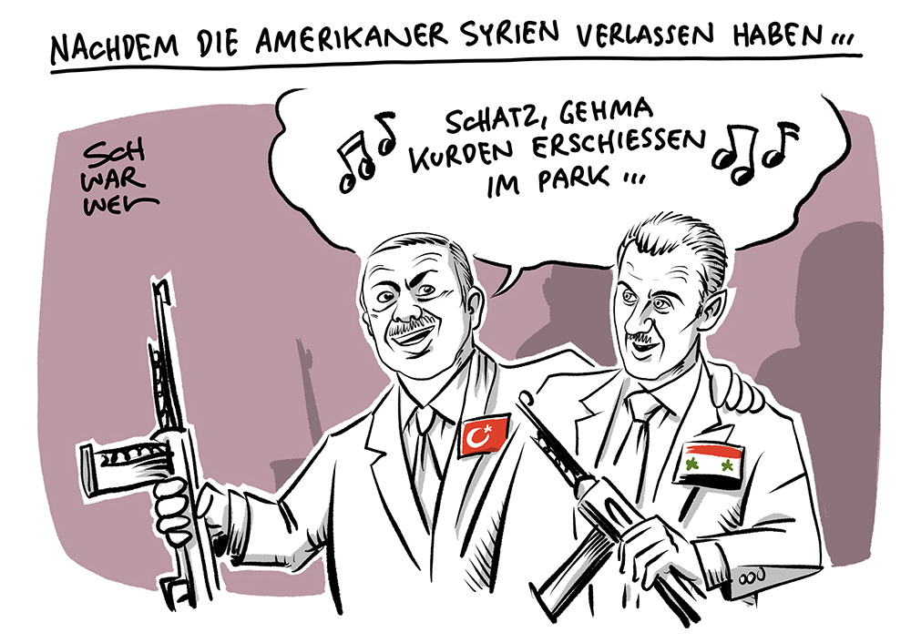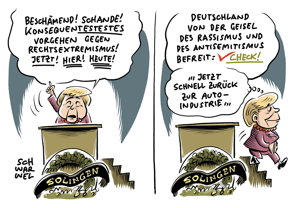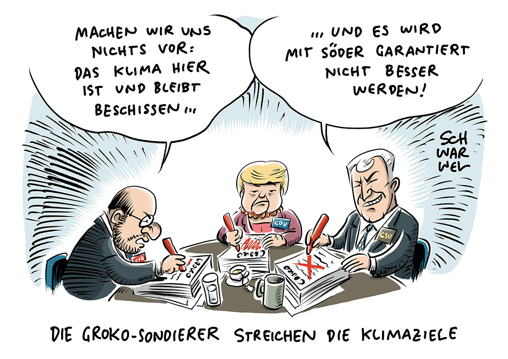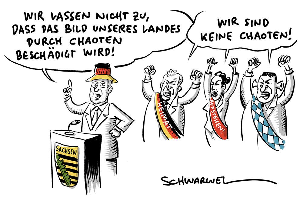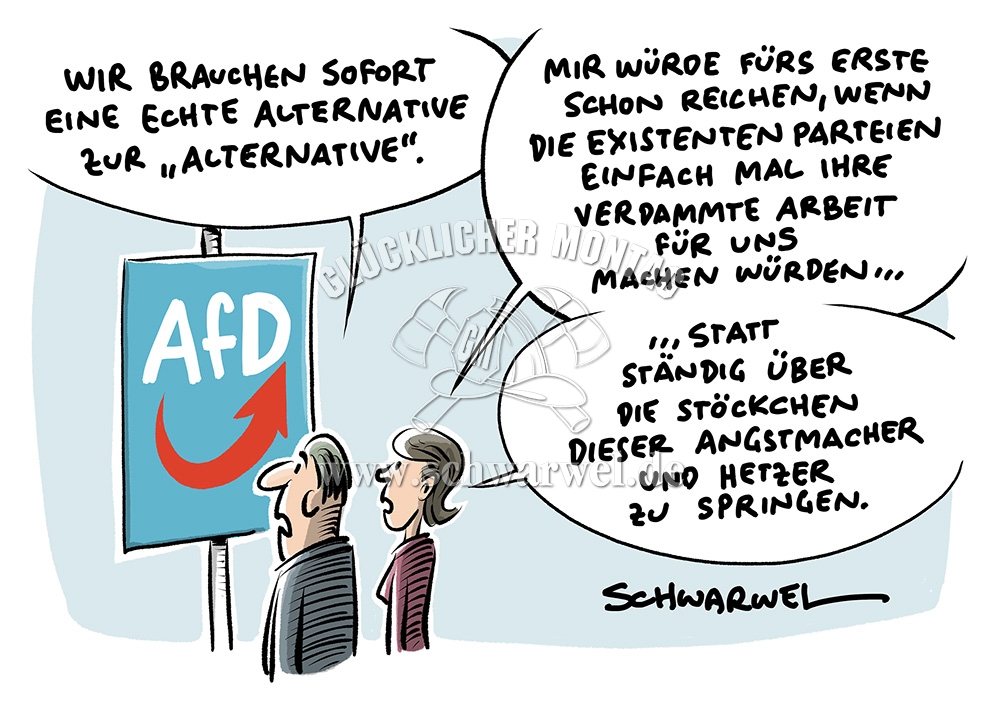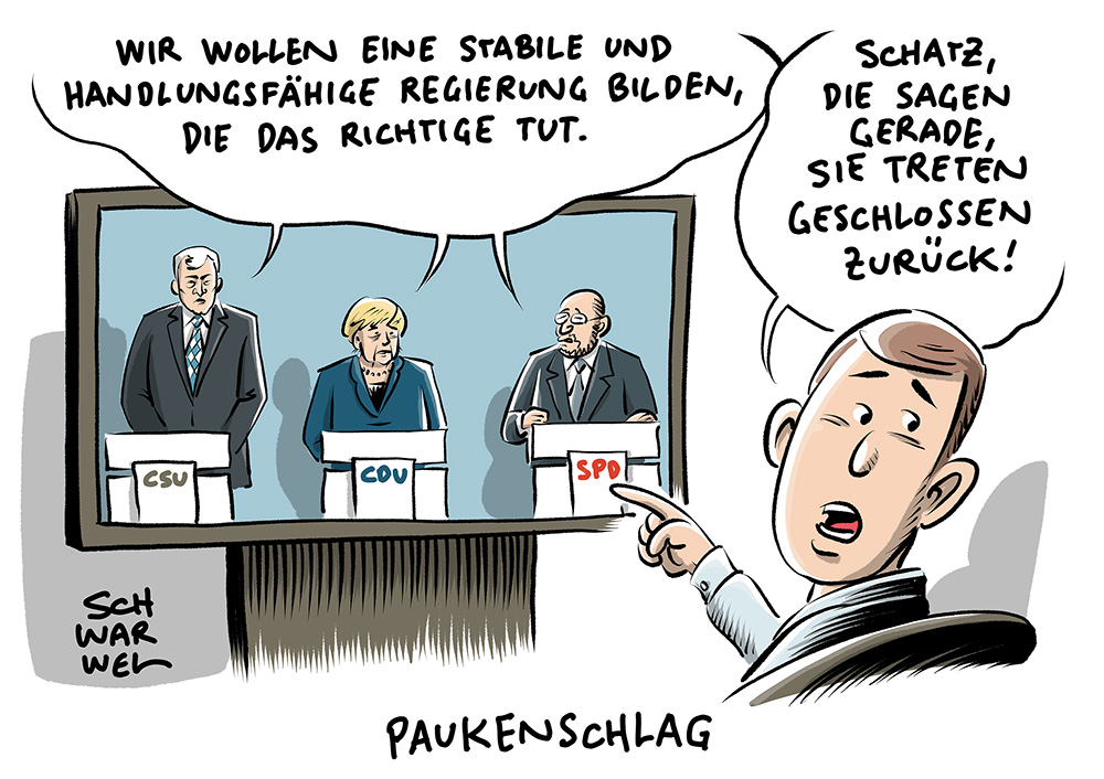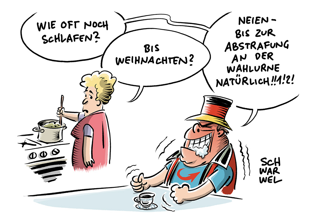 Auf dieser Seite befindet sich eine Auswahl der Karikaturen von Schwarwel. Eine Gesamtübersicht aller Karikaturen, die seit 2010 entstanden sind, gibt es auf Schwarwels Karikaturen-Website www.schwarwel-karikatur.com.