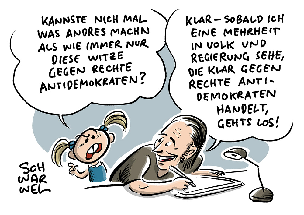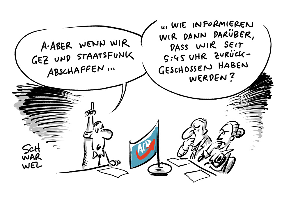 Sie haben Interesse an den Karikaturen von Schwarwel (Abdruck, Web-Veröffentlichung, Arbeitsblätter, Präsentationen, sonstige Verwendung), dann nehmen Sie gern Kontakt mit uns auf: