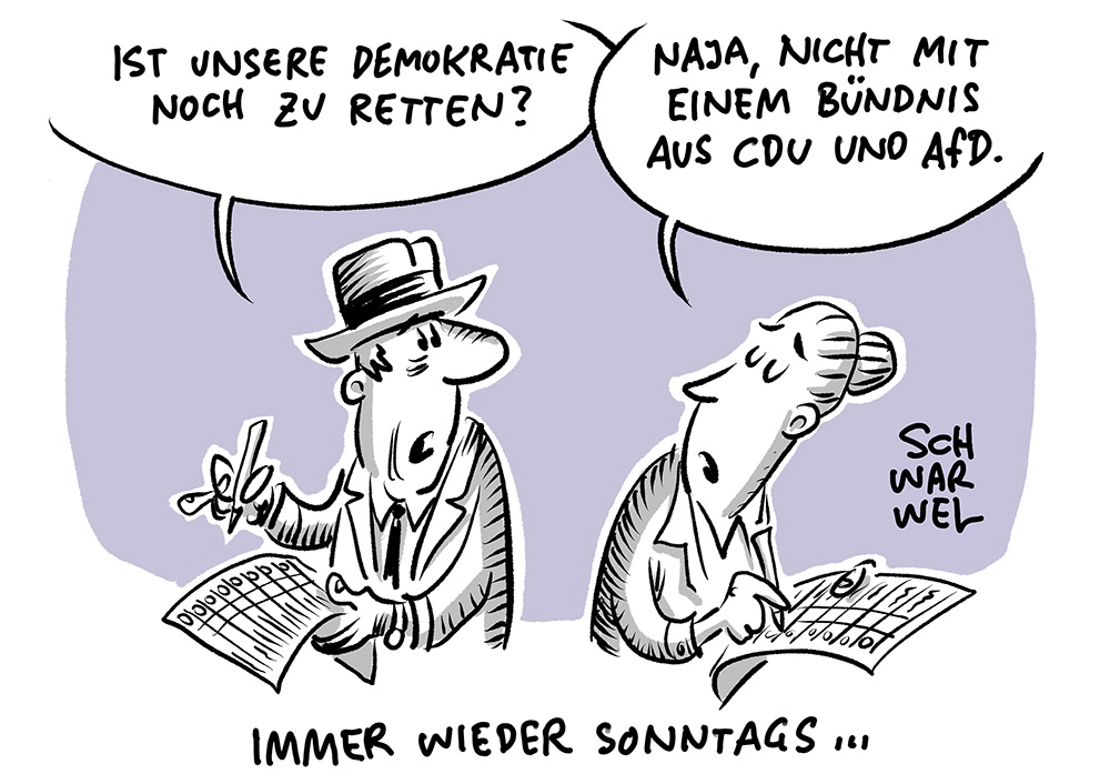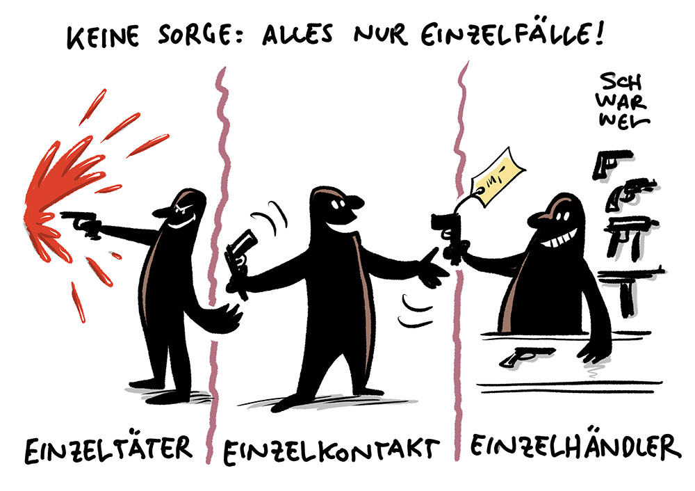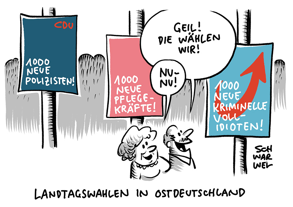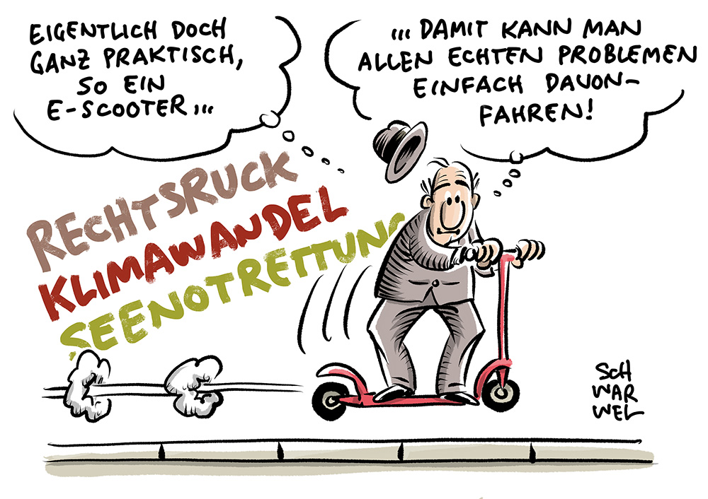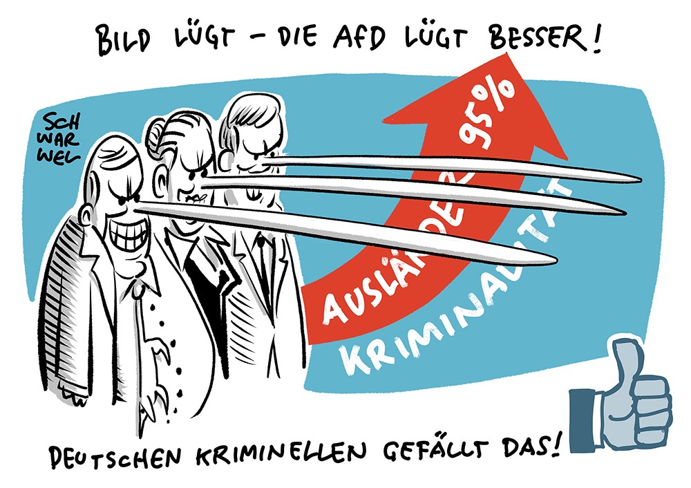 Auf dieser Seite befindet sich eine Auswahl der Karikaturen von Schwarwel. Eine Gesamtübersicht aller Karikaturen, die seit 2010 entstanden sind, gibt es auf Schwarwels Karikaturen-Website www.schwarwel-karikatur.com.