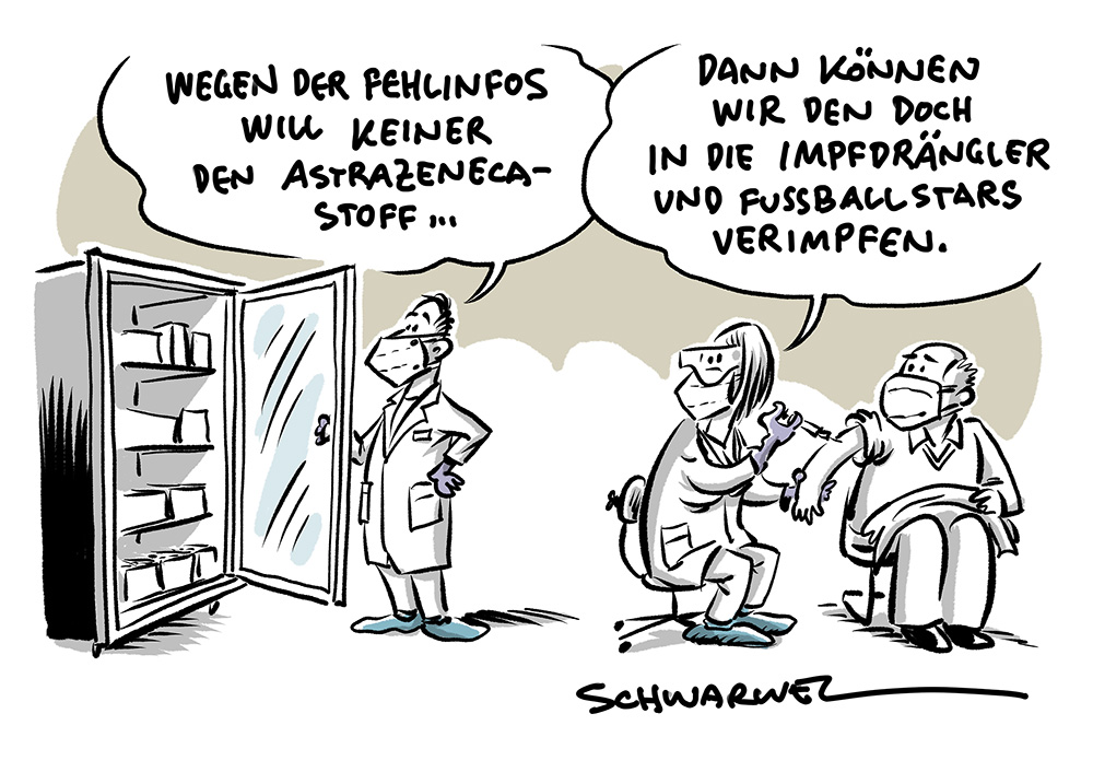Auf dieser Seite befindet sich eine Auswahl der Karikaturen von Schwarwel. Eine Gesamtübersicht aller Karikaturen, die seit 2010 entstanden sind, gibt es auf Schwarwels Karikaturen-Website www.schwarwel-karikatur.com.