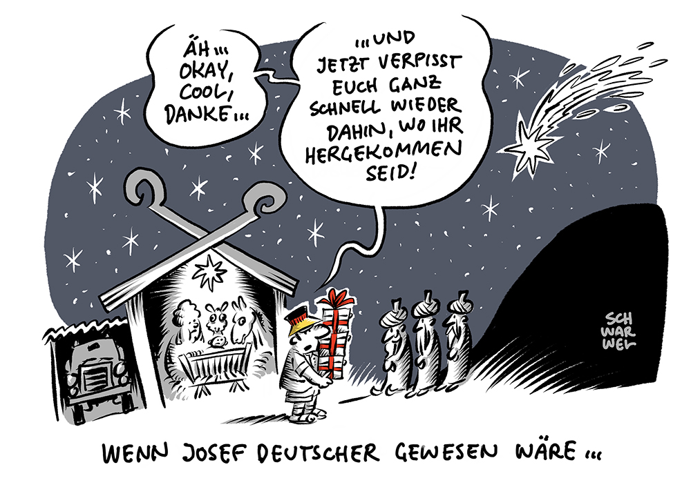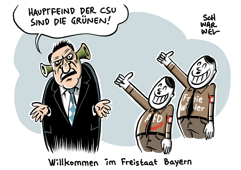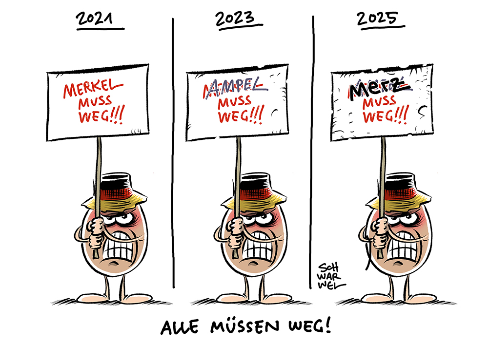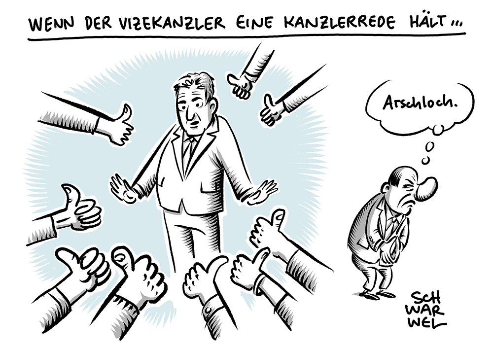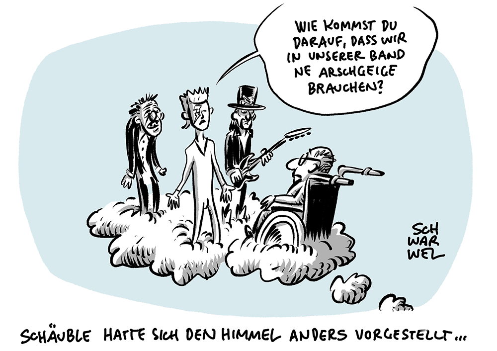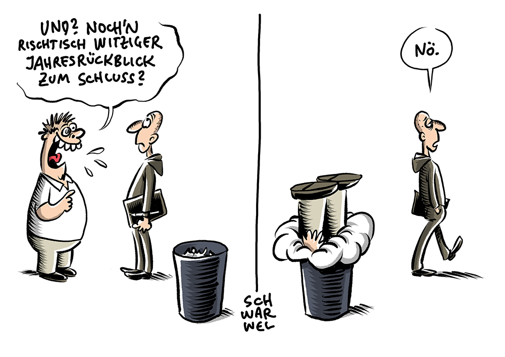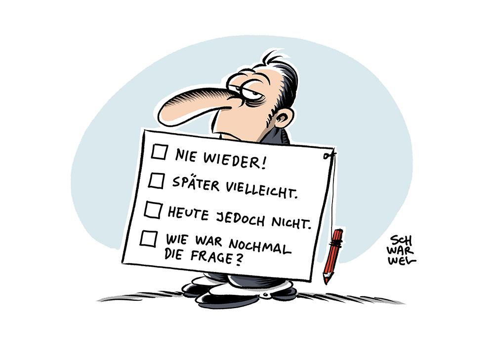 Auf dieser Seite befindet sich eine Auswahl der Karikaturen von Schwarwel. Eine Gesamtübersicht aller Karikaturen, die seit 2010 entstanden sind, gibt es auf Schwarwels Karikaturen-Website www.schwarwel-karikatur.com.