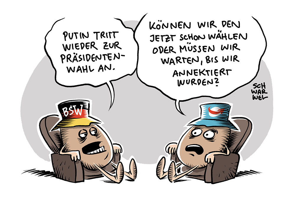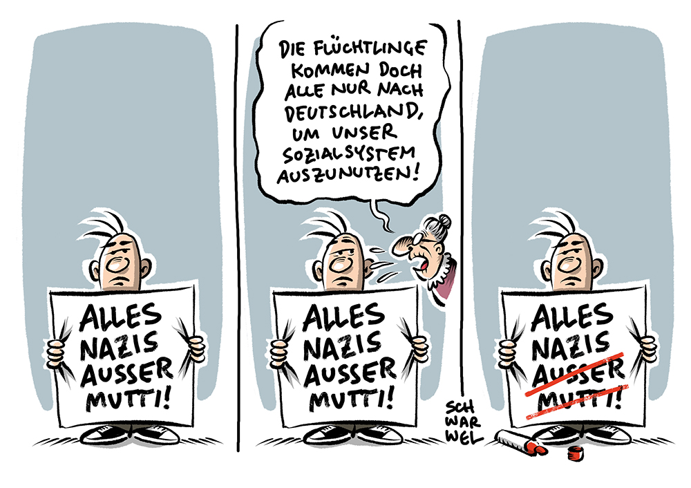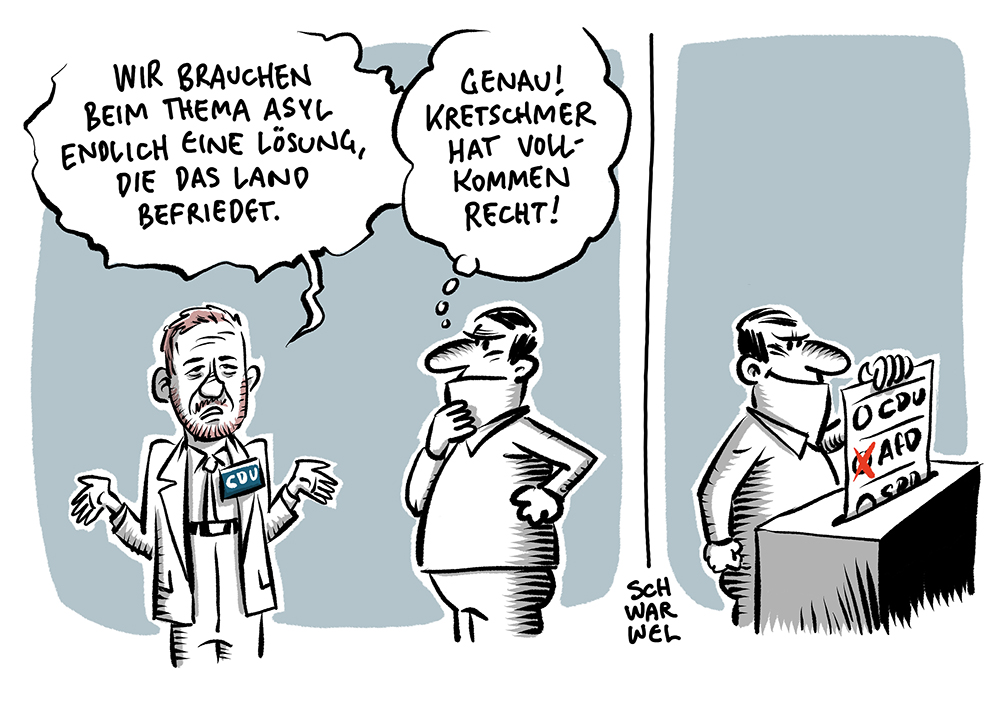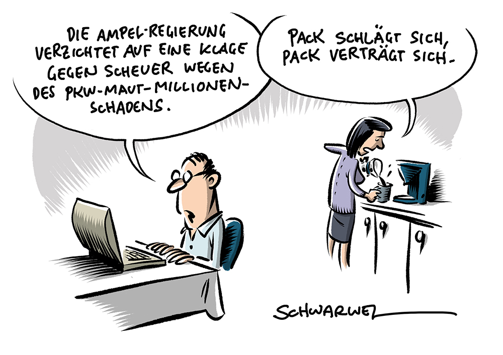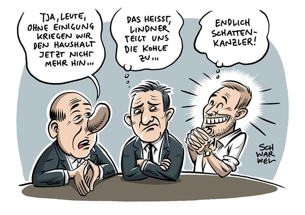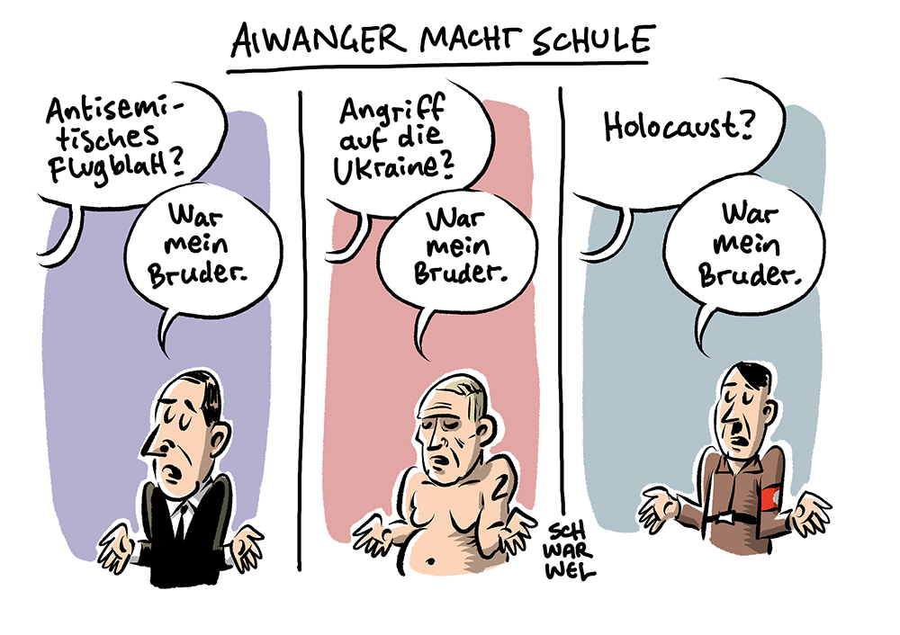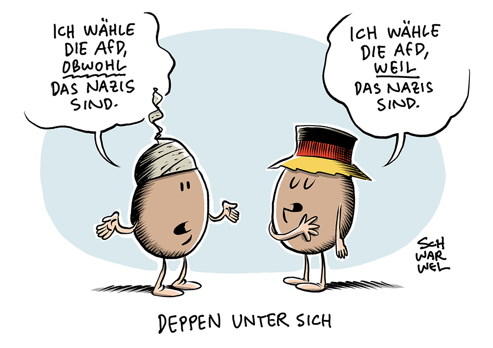 Auf dieser Seite befindet sich eine Auswahl der Karikaturen von Schwarwel. Eine Gesamtübersicht aller Karikaturen, die seit 2010 entstanden sind, gibt es auf Schwarwels Karikaturen-Website www.schwarwel-karikatur.com.