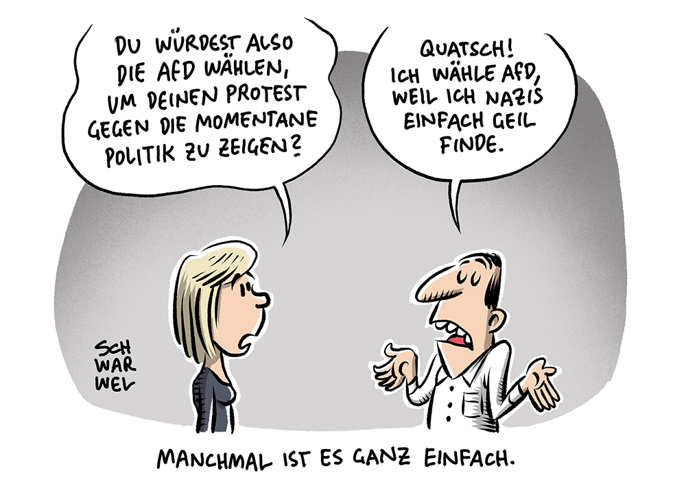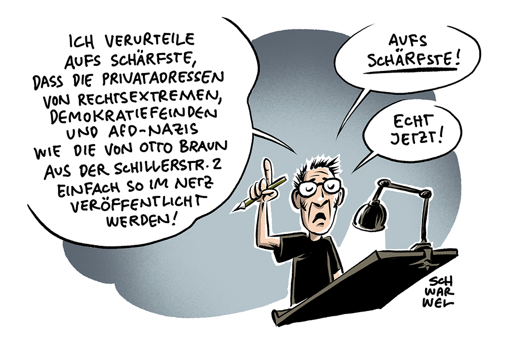 Sie haben Interesse an den Karikaturen von Schwarwel (Abdruck, Web-Veröffentlichung, Arbeitsblätter, Präsentationen, sonstige Verwendung), dann nehmen Sie gern Kontakt mit uns auf: