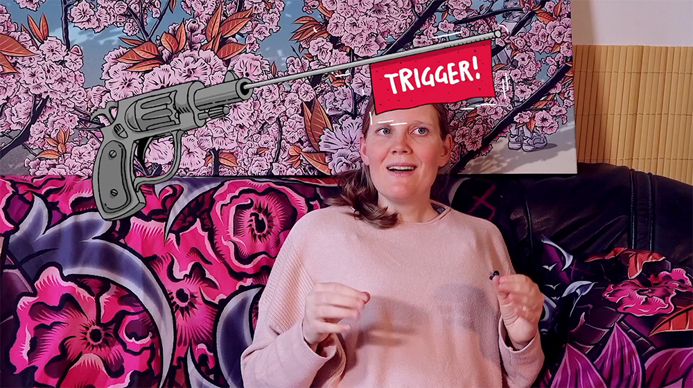 Eine vorgeschaltete Triggerwarnung macht auf die im folgenden Film thematisierten psychischen Belastungen und deren möglicher Wirkung auf die Zuschauer:innen aufmerksam.