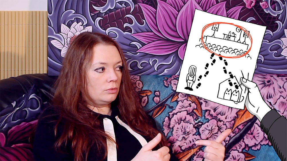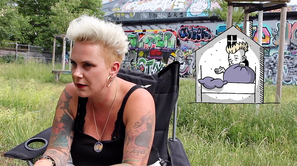Die einzelnen Erzählungen (Real-Aufnahmen) werden in vielen Einzelaussagen durch Animationen von Schwarwel untermalt.