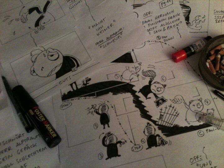 15 % des „Herr Alptraum“-Storyboards im Kasten, noch 72 von 85 Seiten-to-go.
