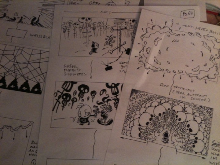 79% des „Herr Alptraum“-Storyboards erledigt und damit noch 18 von 85 Seiten in der Pipeline.