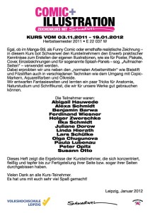 Im Rahmen des Zeichenkurses mit Schwarwel „COMIC+ILLUSTRATION“ vom 03.11.2011 bis 19.01.2012 entstand ein eigenes Comic-Heft mit den besten Arbeiten der Kursteilnehmer.