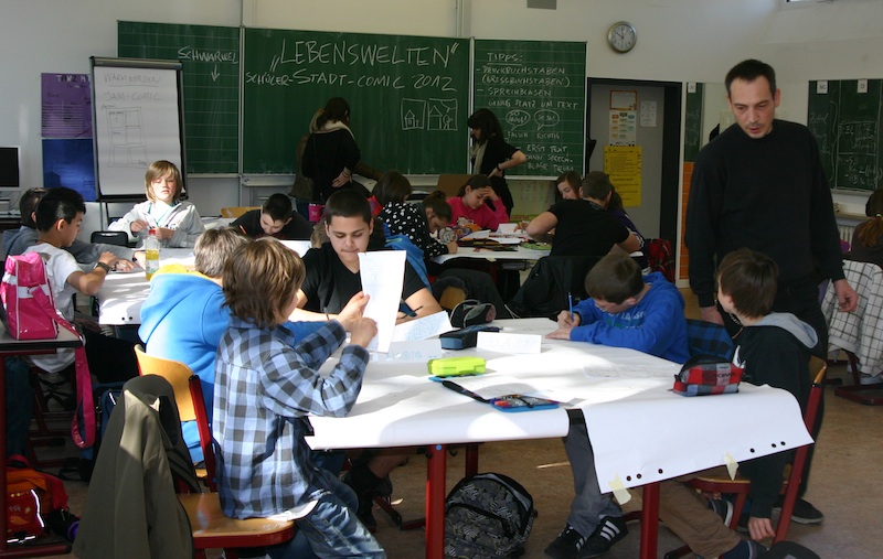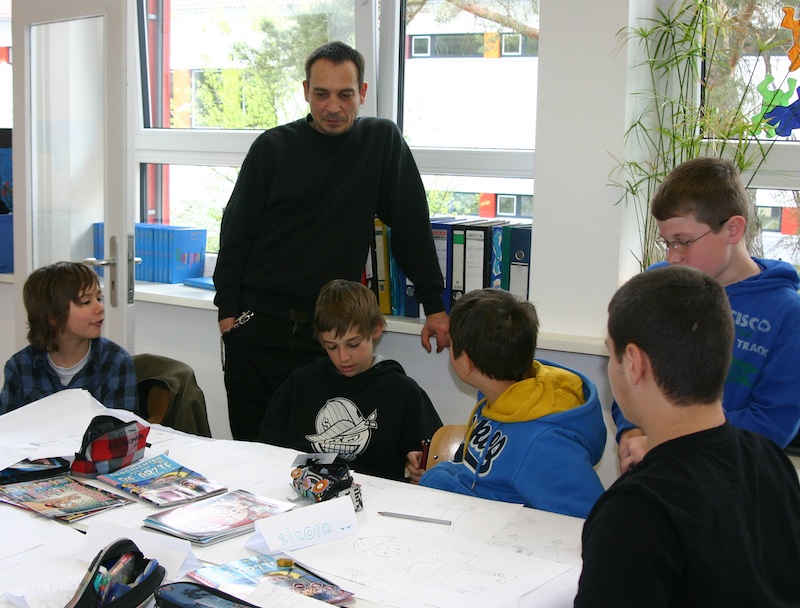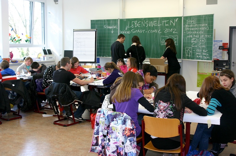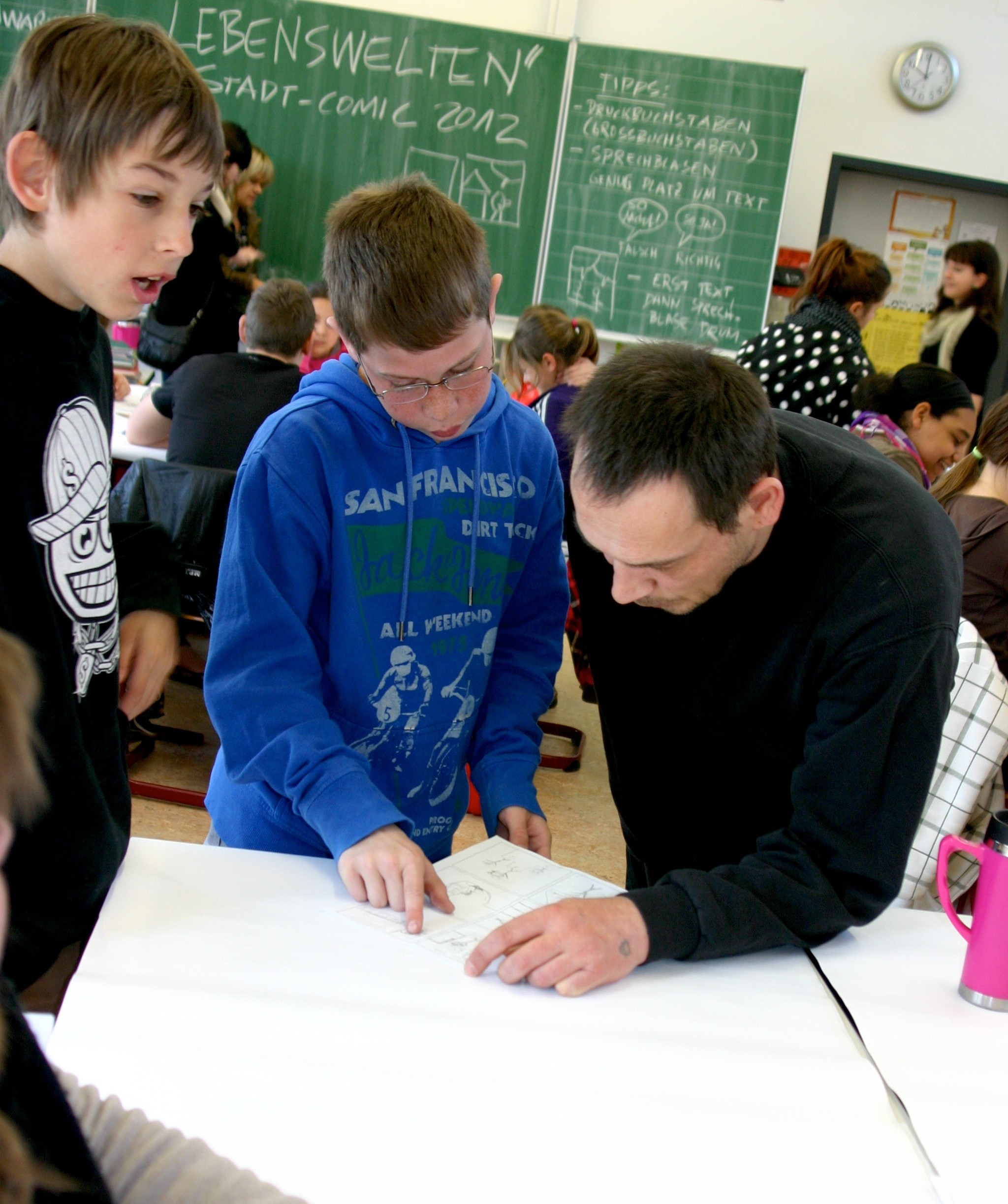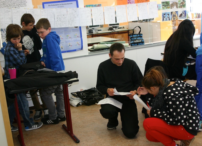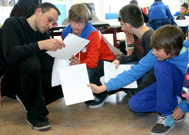 Unter Leitung des Künstlers Schwarwel verbesserten die Teilnehmer ihre eigenen Zeichengrundlagen sowie Stile und bekamen Tipps zum Bildaufbau und der Entwicklung ihrer eigenen Ideen.