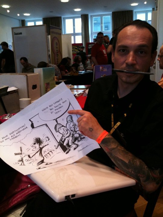 ivezeichnen auf dem comicfestival münchen: karikatur von heute bis 16 uhr per mail an die zeitungen versendet.