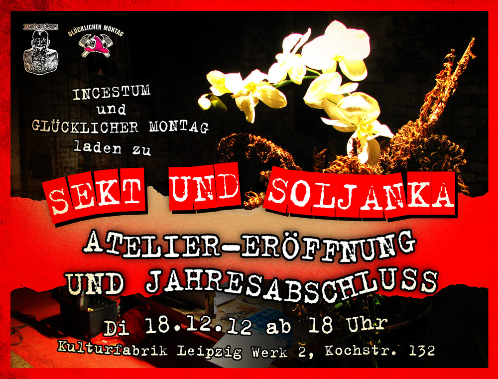 Atelier-Eröffnung: Der Stahl-Plastiken-Schweiß-Künstler Incestum lädt zum Opening seiner neuen kürzlich bezogenen Räumlichkeiten. Exponate zum Anfassen und Erleben sind natürlich gesetzt.
