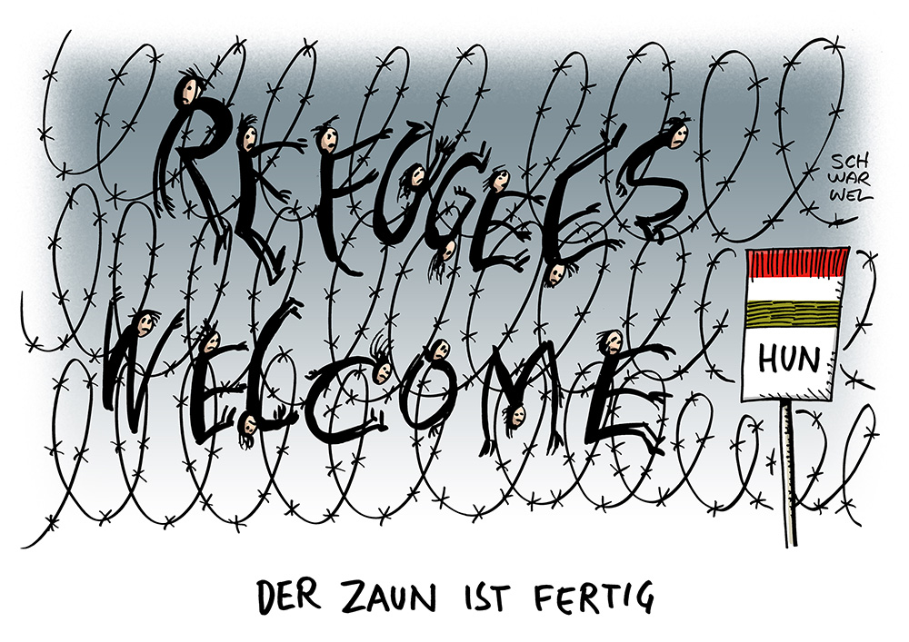 Zaun gegen Flüchtlinge: rechte Regierung Ungarns hat an Grenze Stacheldraht ausgerollt