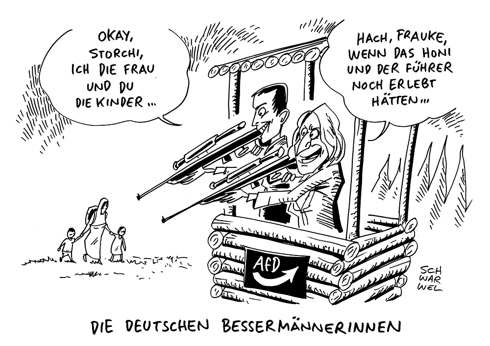 AfD: Petry für Schießbefehl gegen Geflüchtete, von Storch schließt Waffeneinsatz auch gegen Kinder nicht aus