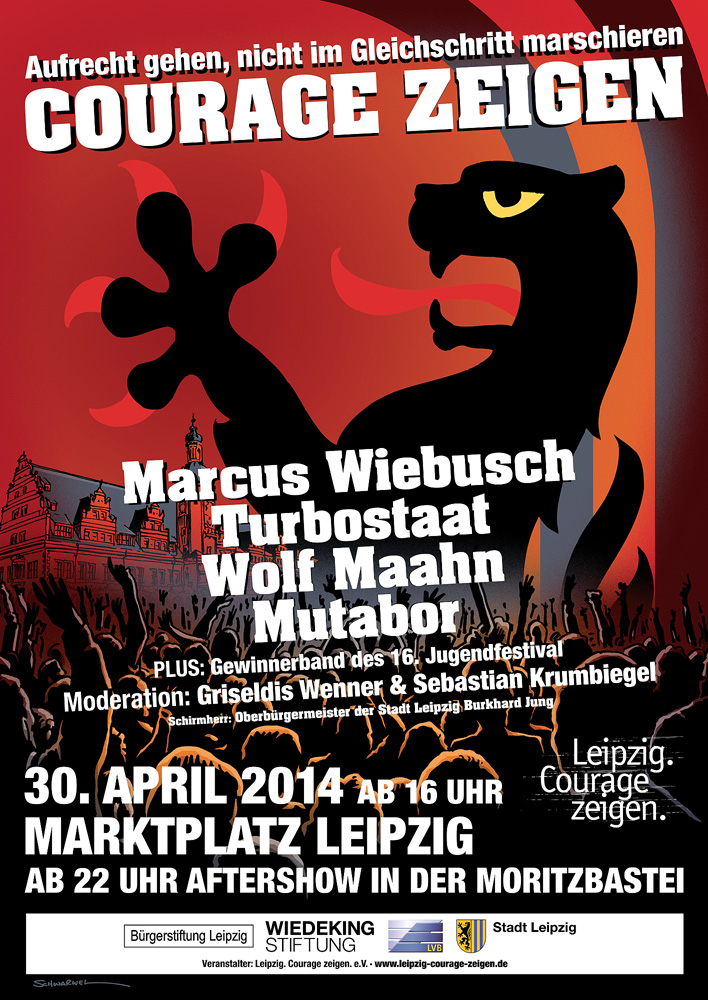 LEIPZIG. COURAGE ZEIGEN. ILLUSTRATION + GESTALTUNG POSTER + FLYER + ANZEIGEN