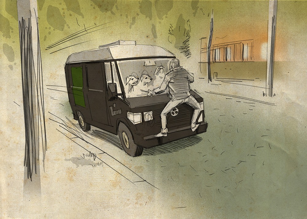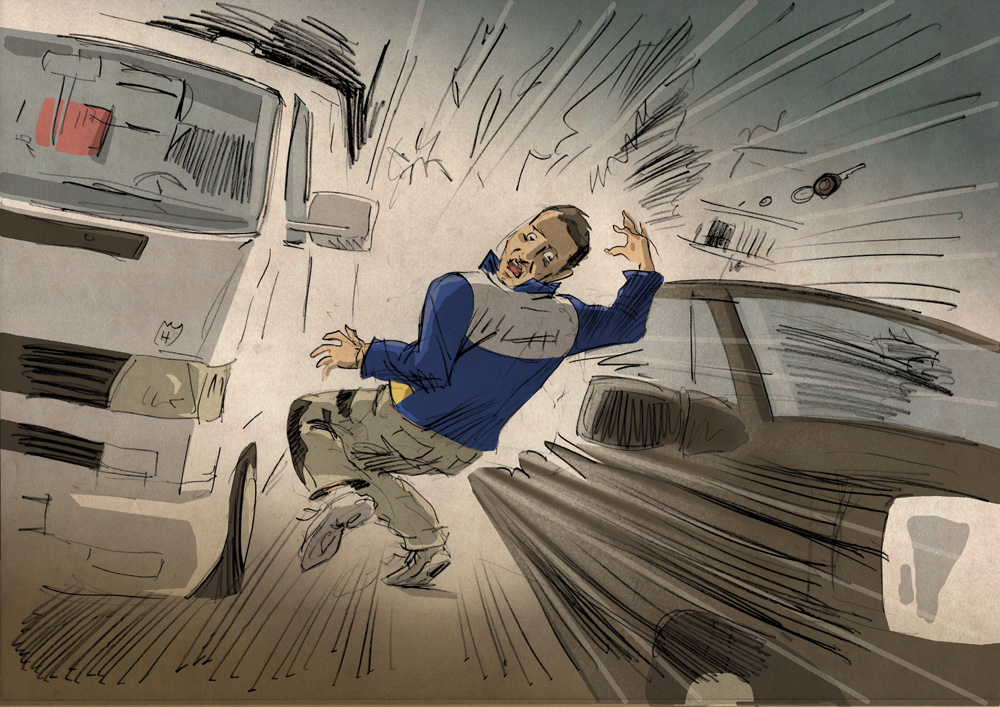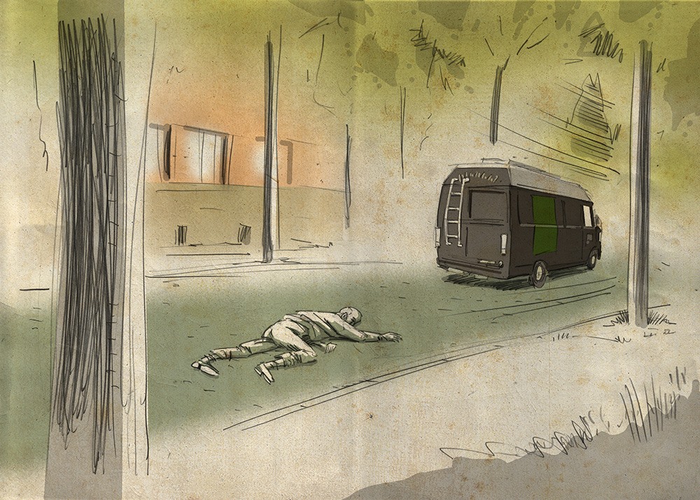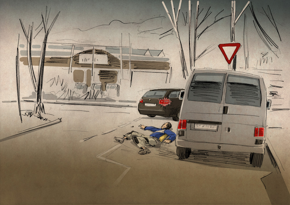 Illustrationen von Schwarwel für MDR Kripo live, Beitrag „Unfallflucht Rudolstadt“
