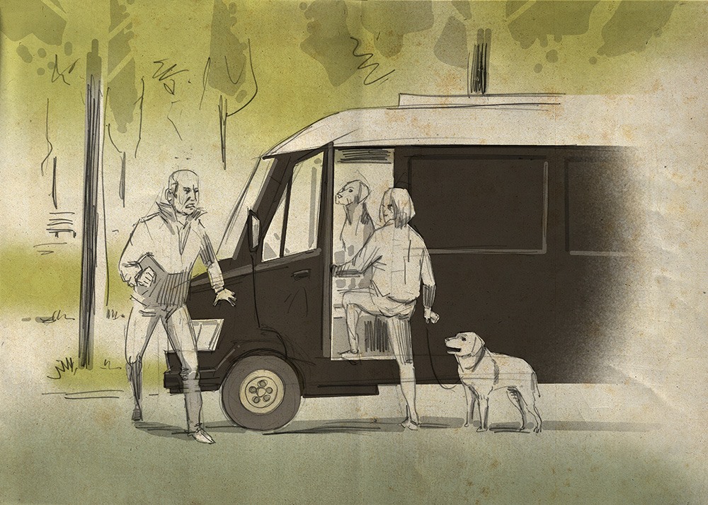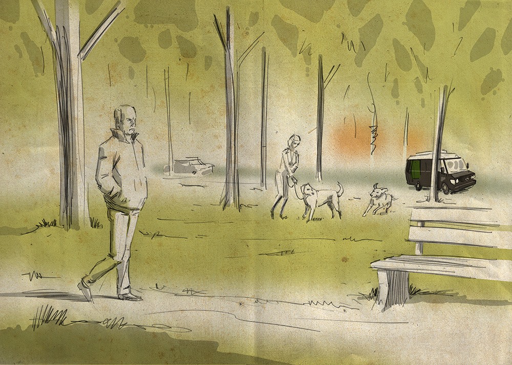 Illustrationen von Schwarwel für MDR Kripo live, Beitrag „Dunkle Jacke“