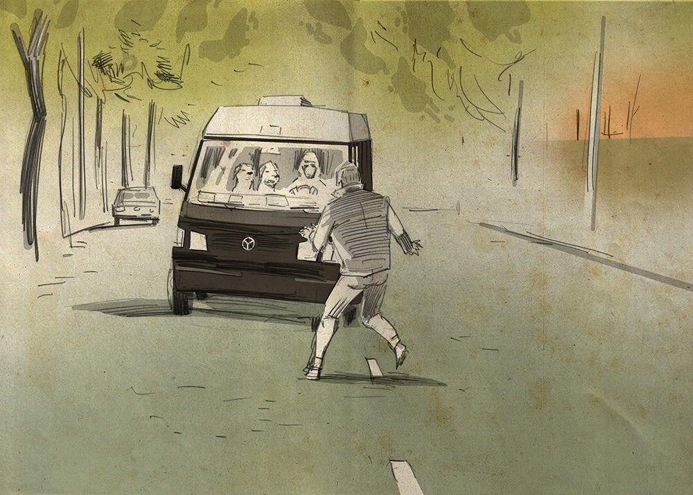 Illustrationen von Schwarwel für MDR Kripo live, Beitrag „Unfall Reko“