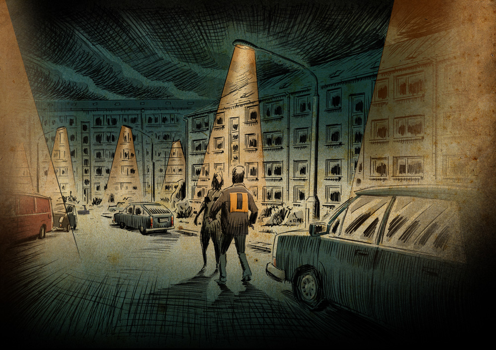 Illustrationen von Schwarwel für MDR Kripo live, Beitrag „Diskothek MD“