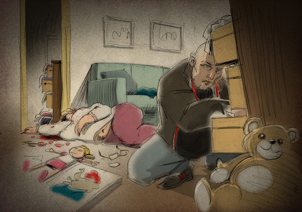 Illustrationen von Schwarwel für MDR Kripo live, Beitrag „Tote Tagesmutter“