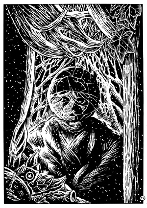 Auf Hunde ist in dieser Geschichte mehr Verlass als auf Menschen und der Wald bietet nicht nur Frau und Haustier, sondern auch einem ganzen Trupp seltsamer Pennern Zuflucht. Steinerne Relieffiguren künden von Werten, die den Menschen hier fremd scheinen, und im Gestrüpp liegt ein ei-artiges Objekt, das zum Schluss des ersten Bandes aufbricht um – man weiß nicht welches Wesen – in die Welt zu entlassen …
