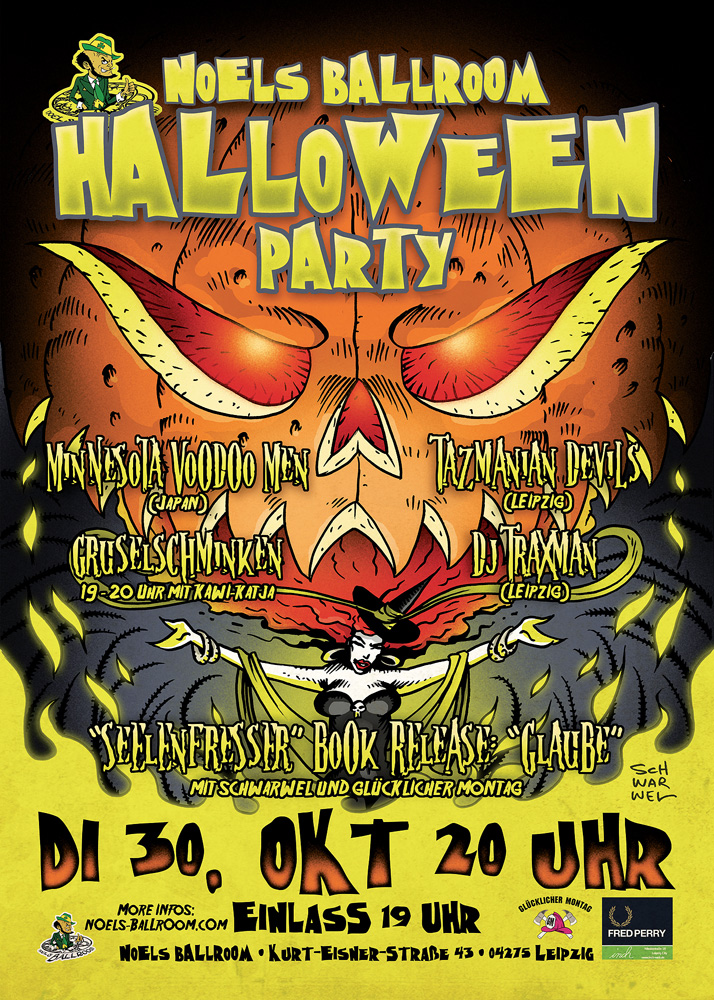 In schaurigem Ambiente mit Dekoration zum Thema „Famous Monsters“ durch den Künstler Incestum und die dazu passenden „SEELENFRESSER“-Arbeiten von Schwarwel spielen „Minnesota Voodoo Men“ (Japan) und „Tazmanian Devils“ (Leipzig) live.