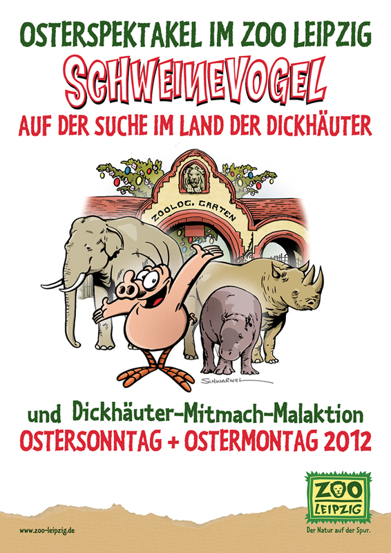 Weil wir im letzten Jahr mit Groß und Klein so viel Spaß dabei hatten, gehen Schweinevogel und seine Knuddelfreunde auch zu Ostern 2012 mit dir auf große Suche im Zoo Leipzig!