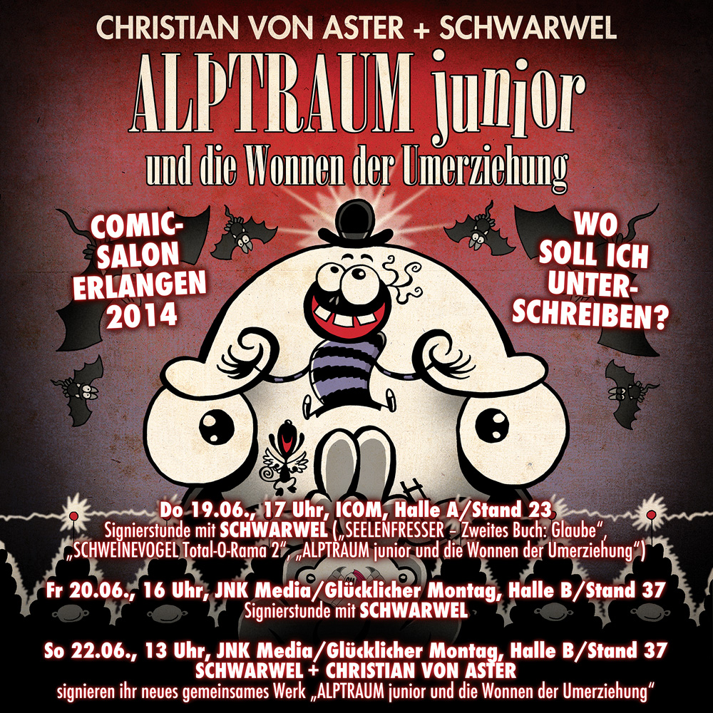 Neuveröffentlichung: Christian von Aster + Schwarwel „Alptraum junior und die Wonnen der Umerziehung“, VÖ: Juni 2014, Glücklicher Montag – www.herr-alptraum.de