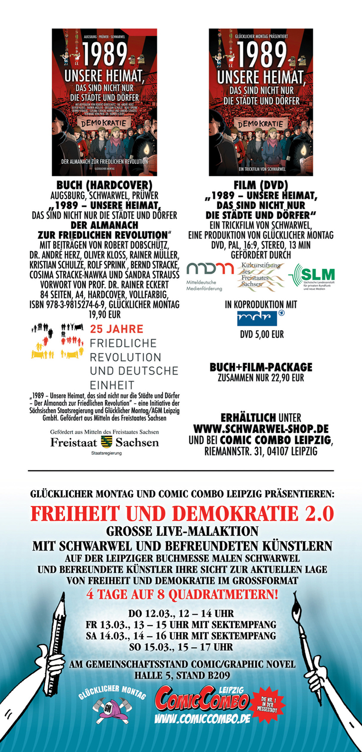 Do 12.03., 11 – 11:30 Uhr Filmpräsentation „1989 – Unsere Heimat, das sind nicht nur die Städte und Dörfer“ + Gespräch mit Schwarwel auf der Großen Bühne, Halle 1, B601