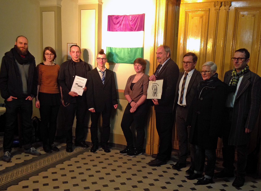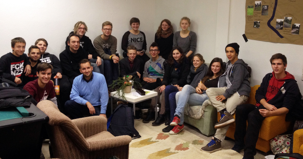 Titelverleihung „Schule ohne Rassismus, Schule mit Courage“ für das St. Augustin in Grimma, dessen Schülerinitiative „St. Augustin denkt bunt“ Schwarwel als Pate zur Seite stehen darf.