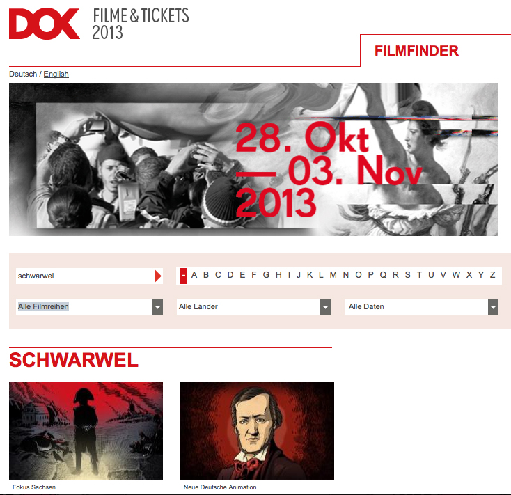 “1813 – Gott mit uns” wird am Sa 02.11.2013, 17 Uhr auf dem 56. Internationalen Leipziger Festival für Dokumentar- und Animationsfilm, im Fokus Sachsen in den Passage Kinos, Wintergarten vorgeführt – in Anwesenheit des Regisseurs Schwarwel.